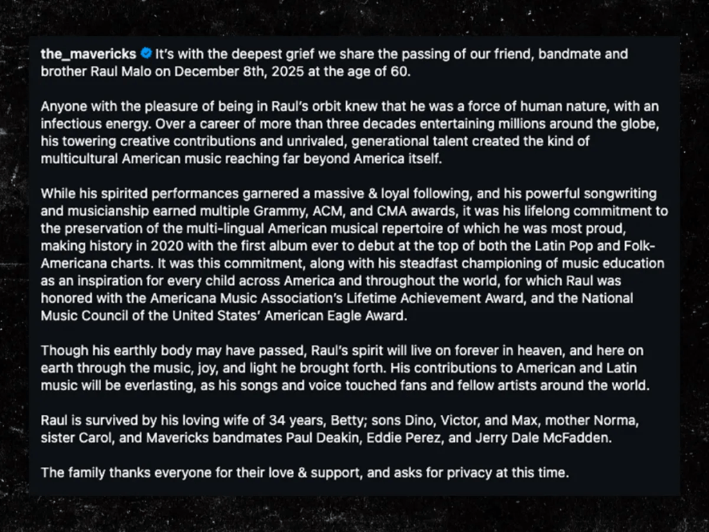 One of Sun Radio’s favorite artists, Raul Malo, has passed away, leaving a significant void in the American roots and country music community. Known for his unmistakable voice in the Mavericks, Malo played a central role in shaping the band’s sound, which mixed country, rockabilly, and Latin influences into a style that stood apart in the 1990s and beyond. His work earned widespread respect from fans, fellow musicians, and critics alike.